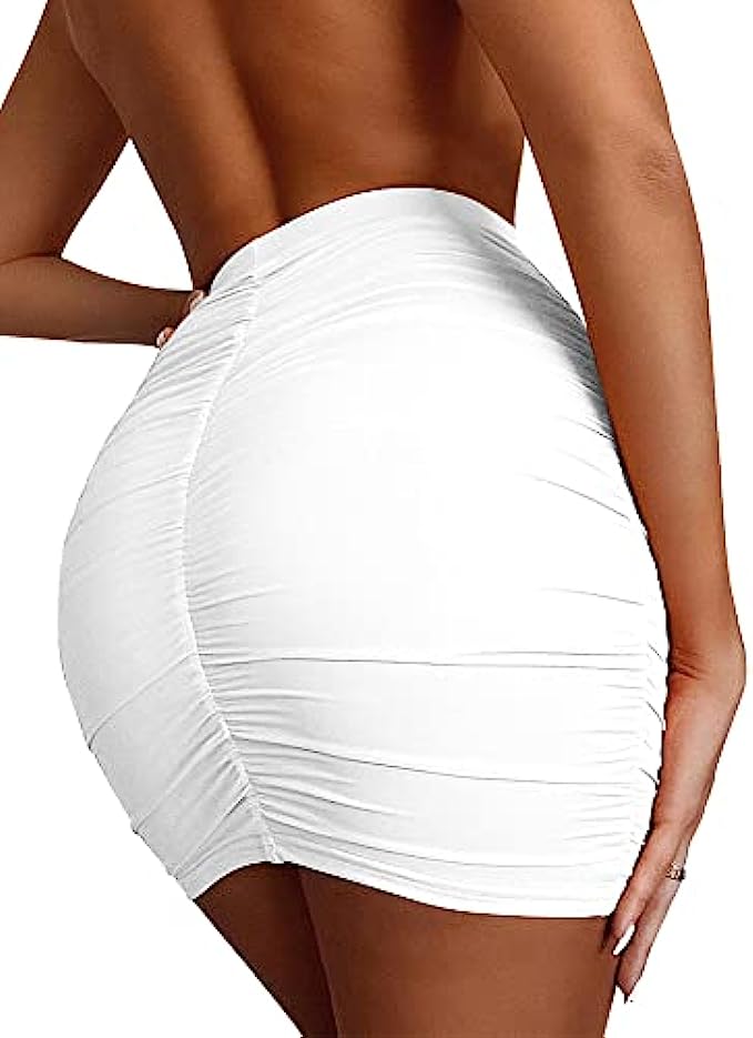 eoeoo Women’s Ruched Bodycon Skirt High Waist Elastic Tight Sexy Club Mini Skirt